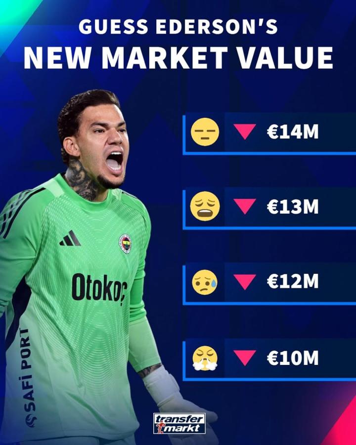 懂球帝首页>动态> 德转预热埃德森身价下跌:最低可能跌至1000万欧