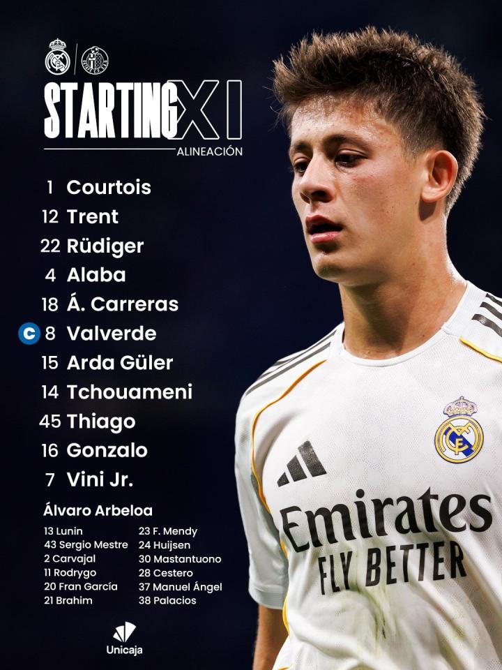 03-03 04:00皇马vs赫塔费:维尼修斯、库尔图瓦首发,萨特里亚诺、戴维-索里亚出战