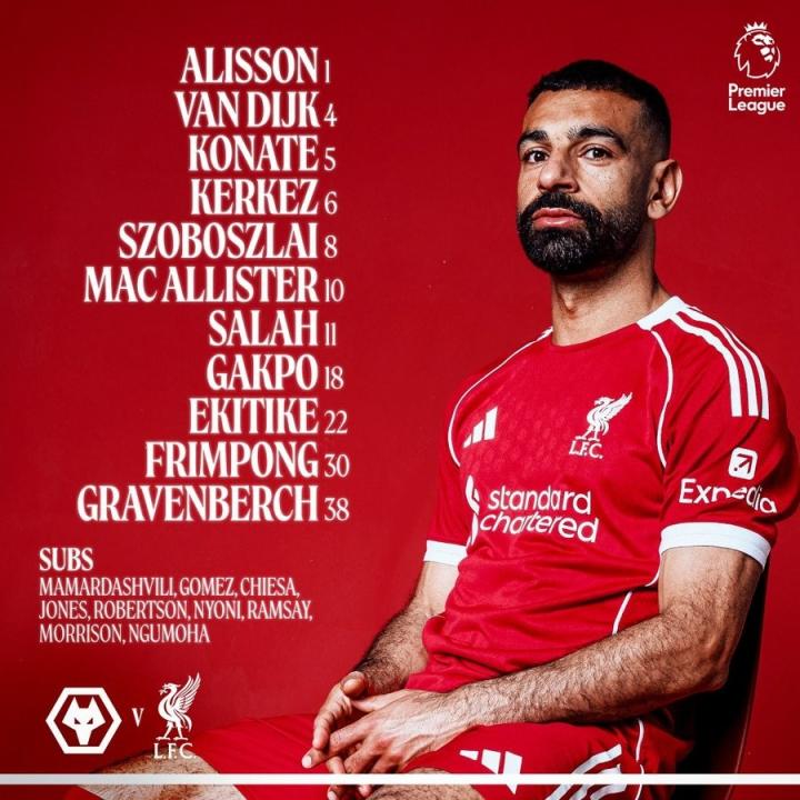 扫描下载懂球帝首页>动态> 利物浦客战狼队:萨拉赫、埃基蒂克、加克波首发,弗林蓬出战