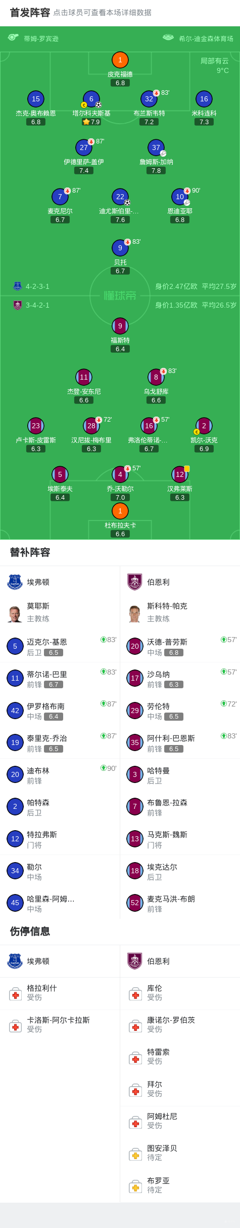 解说完点评:上轮恶战似乎对伯恩利影响更大,本来就实力不足,这场还没精打采;埃弗顿的两个伯恩利旧将今天都不错,皮克福德还是那么有节目。