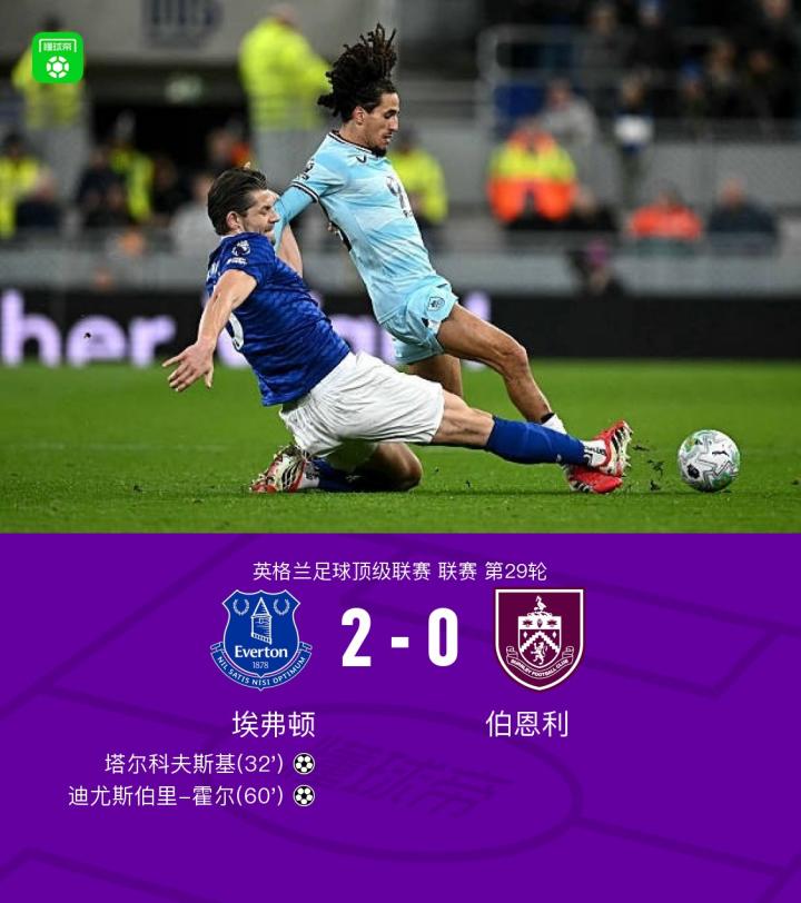 扫描下载懂球帝首页>动态> 埃弗顿2-0伯恩利,塔尔科夫斯基破僵,霍尔进球