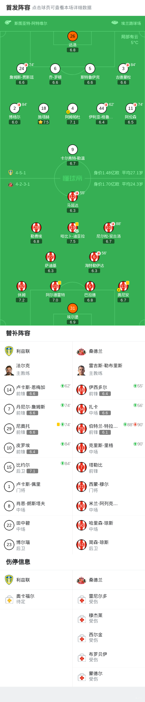 第69分钟,阿姆帕杜手球送点,迪亚拉主罚命中,利兹联0-1桑德兰