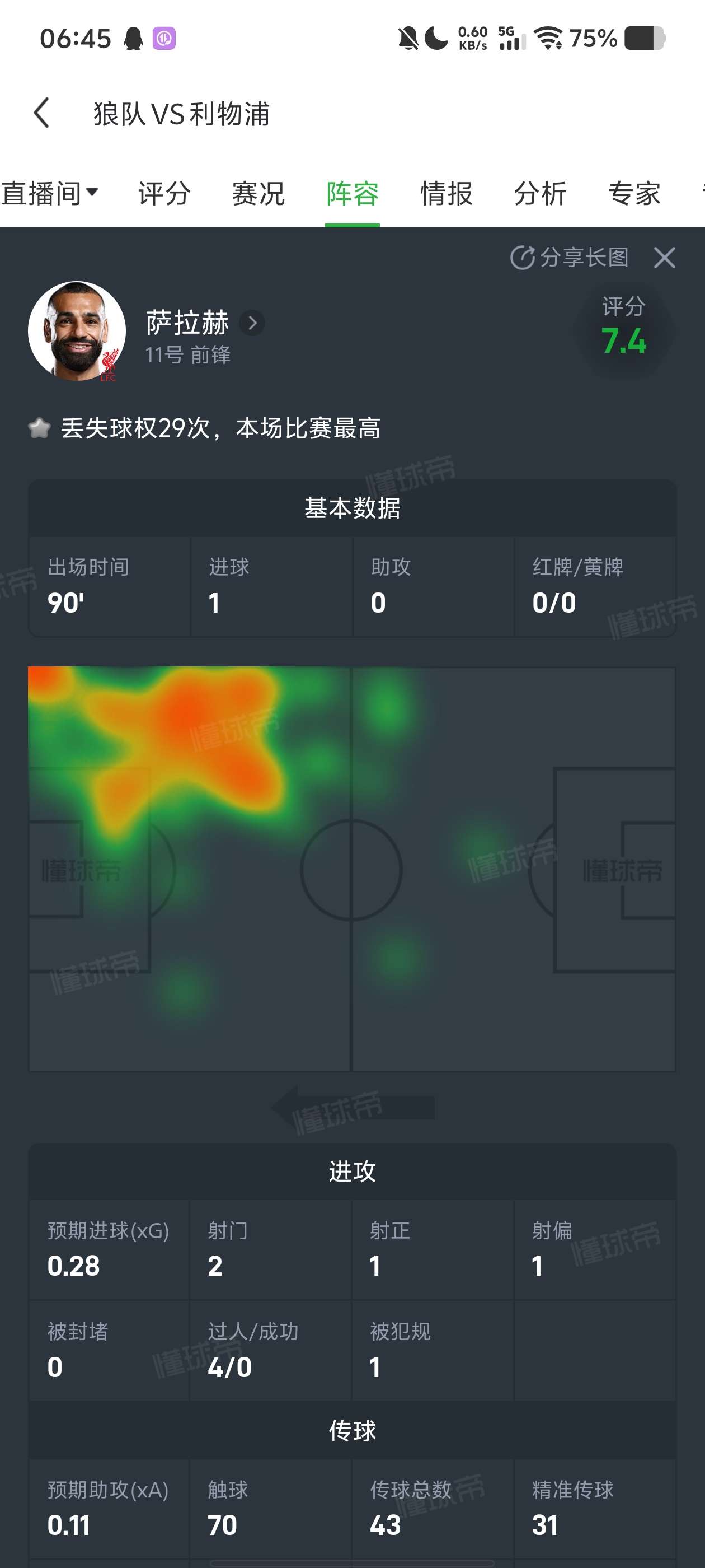 我对法老真的很难说,踢了一整局首发,不知道在干什么,幸好狼队那个人梦游直接助攻法老射门,还吃球权,丢了29次球,过人是0,我不知道这个状态为什么能一直首发,红军两边的边锋球员真的是逆天,一个无脑内切机器人,一个疯狂吃球权0过人,那个恩古莫哈跟基郭萨能不能多首发几场看看他俩的表现,万一这两多打几场打出效果了呢,反正这两个已经这么菜了,为啥不给其他球员机会