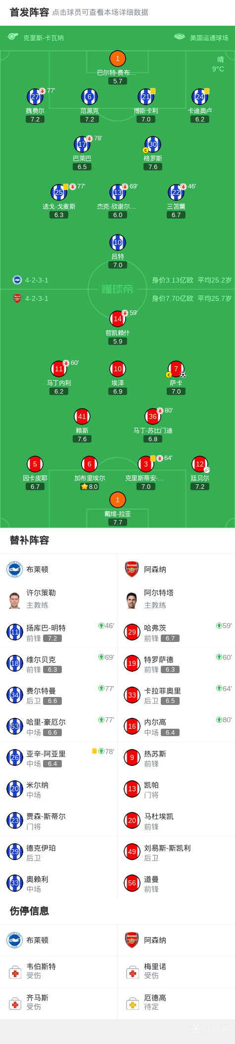 03-05 05:503球4助攻,萨卡生涯英超对阵布莱顿造7球所有对手第三多