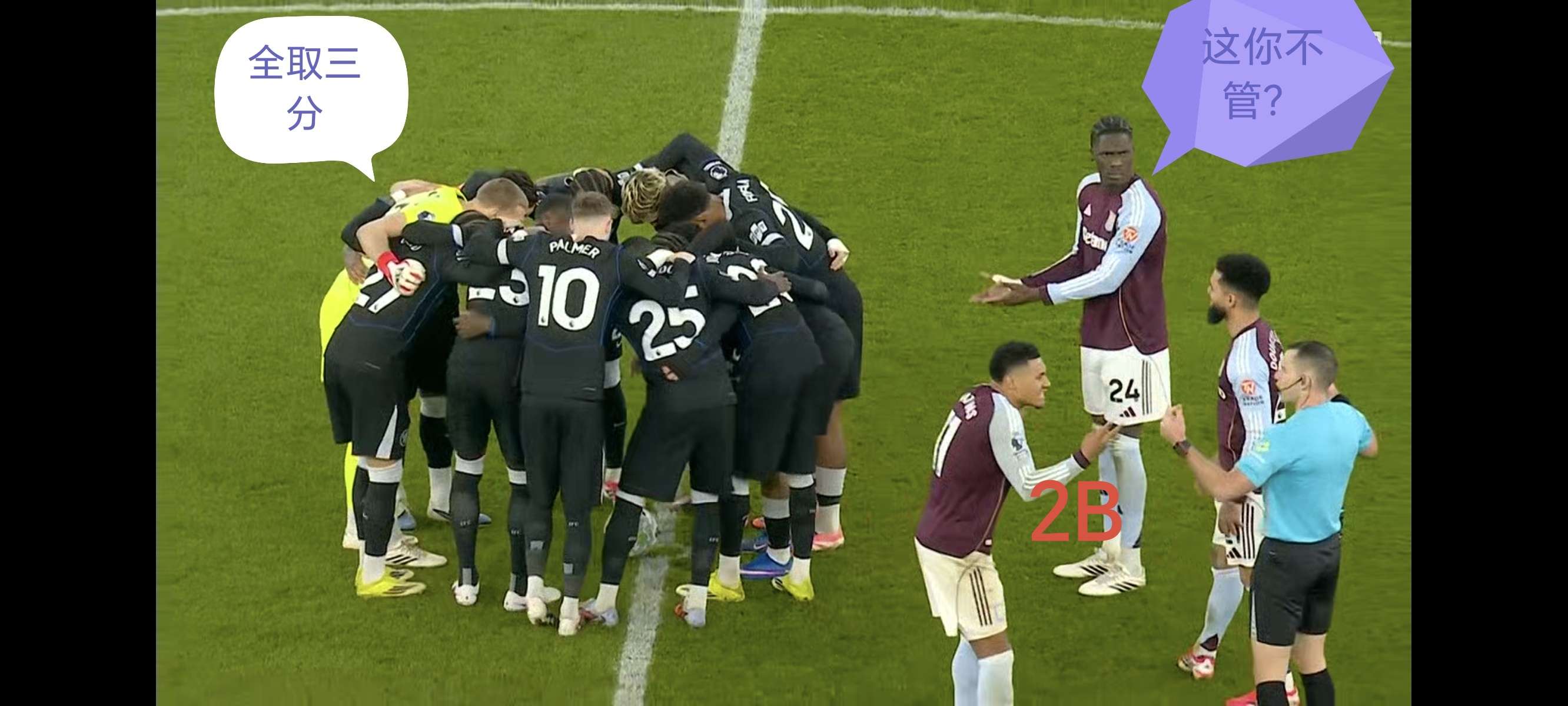 太搞笑了,要是维拉球员集结起来,站在后面,等切尔西喊完之后他们再围上去喊一遍节目效果会更好