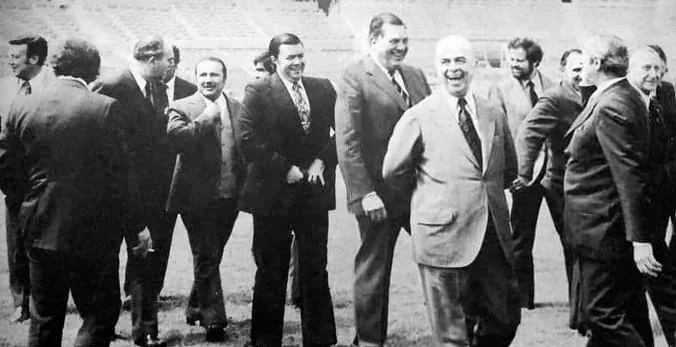国际足联派代表团去智利国家体育场考察,看看场地是否适合举行足球比赛。代表团里包括国际足联副主席阿比利奥-德阿尔梅达,以及秘书长赫尔穆特-克泽尔。智利的一位海军将军亲自指引他们前往体育场。