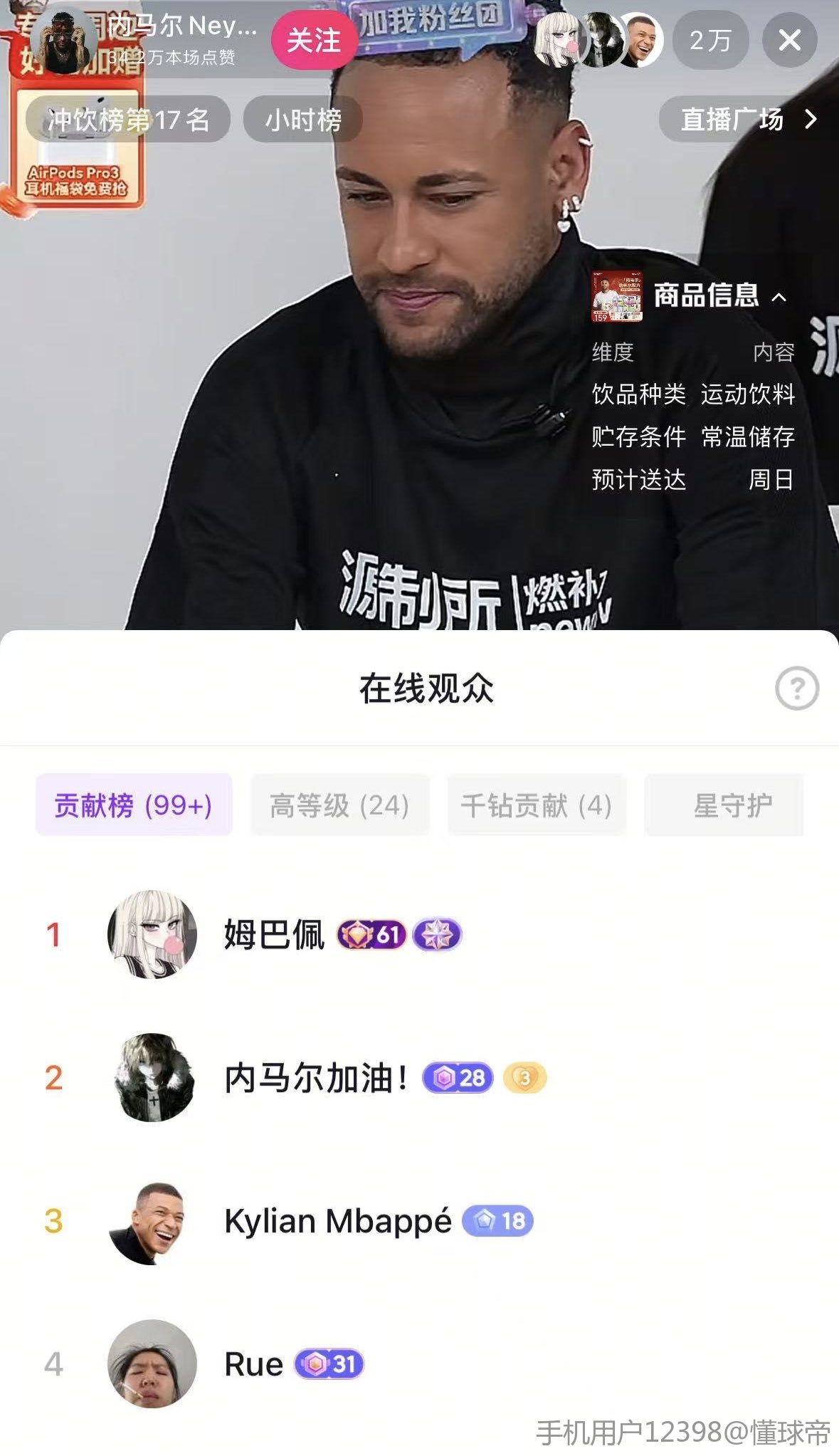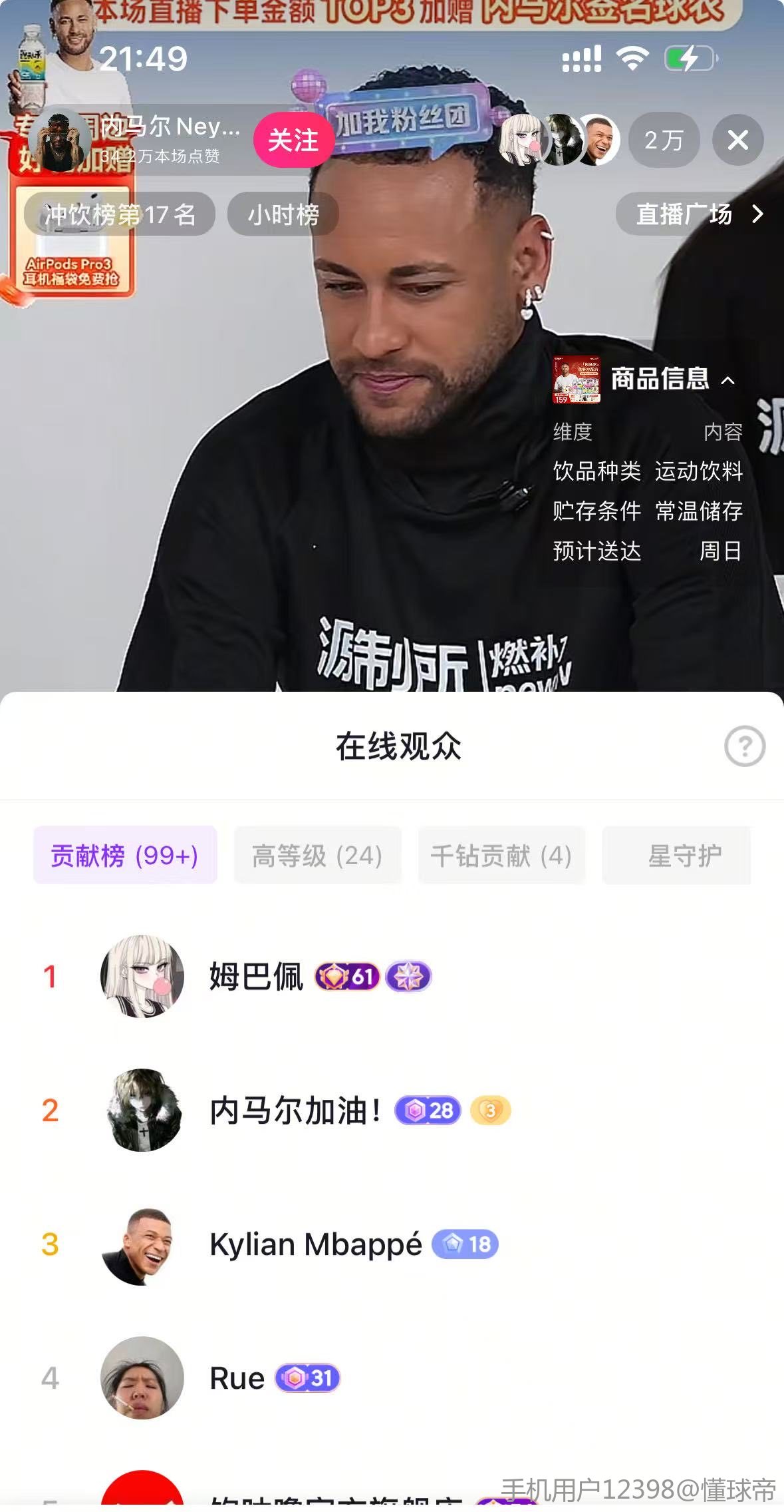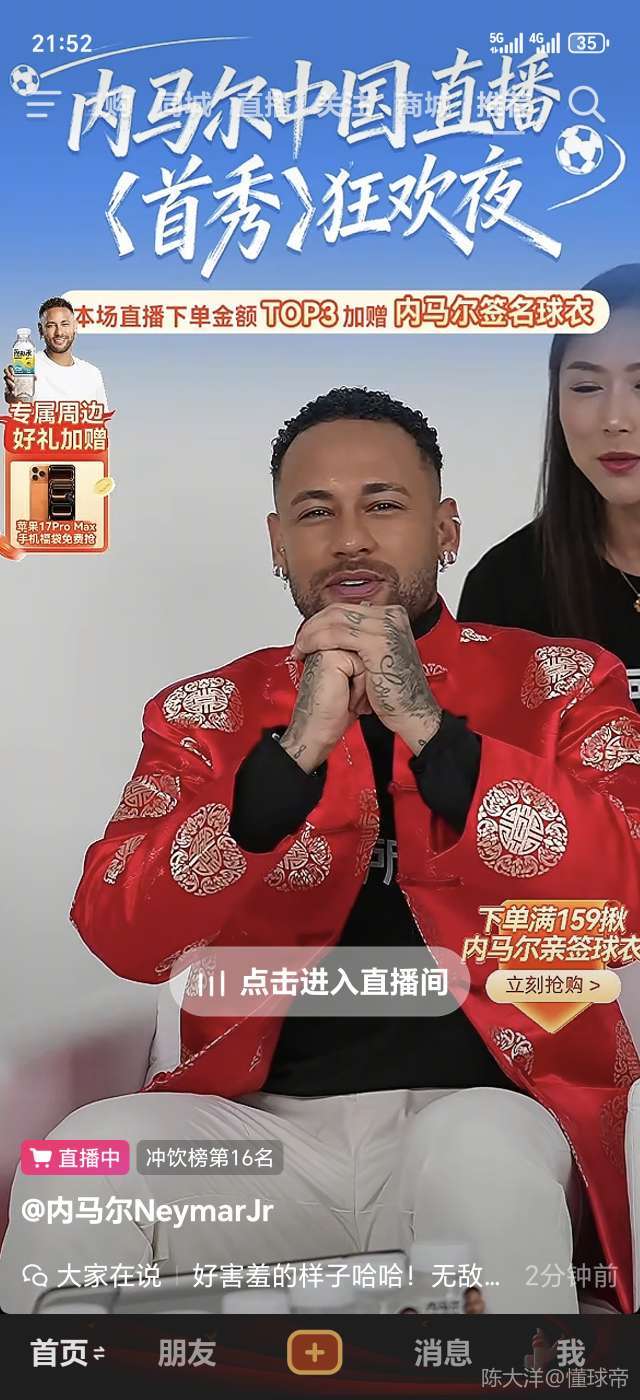 扫描下载懂球帝首页>动态> 内马尔现身抖音直播间为运动饮料带货,不到一小时后离开