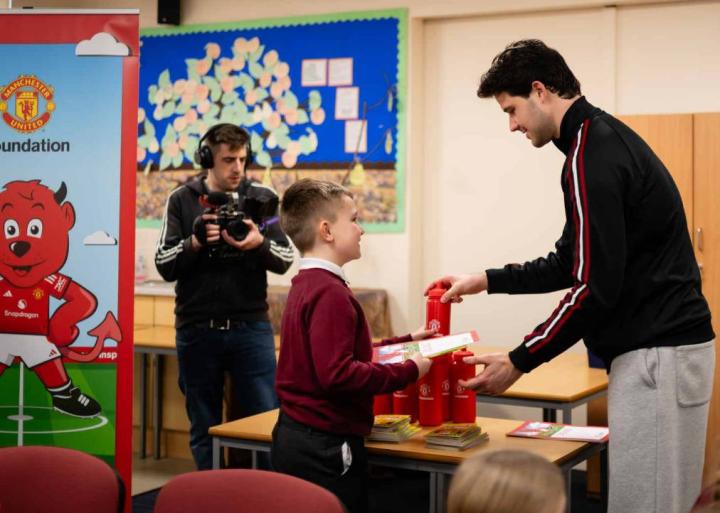 扫描下载懂球帝首页>动态> 拉门斯参加世界读书日活动,在当地小学分发书籍并接受提问