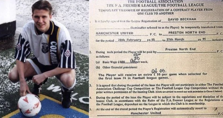 双方在1995年2月28日完成签约,租借合同为期1个月。贝克汉姆的周薪是400英镑,出场费则是50英镑。