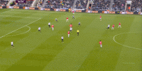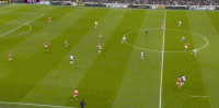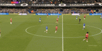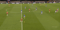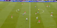 自己来到了边路,或者身前空间广袤,可以试着自己突破,但是,戈登选择了对自己球队推进成功率更高的线路: