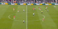 布鲁诺和乌加特担任中场,前场从左至右是库尼亚、齐尔克泽、谢什科和阿玛德-迪亚洛,谢什科没什么作用,但确实可以像哈兰德那样牵制住对手的后卫线,从而给二线的齐尔克泽制造了充裕的发挥空间: