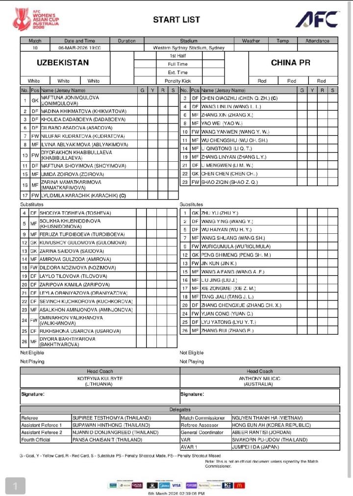 03-06 18:05乌兹别克斯坦女足 vs 中国女足 比赛动态