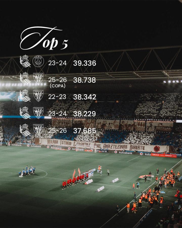 扫描下载懂球帝首页>动态> 皇社主场上座人数前五中四场都是对阵毕包,但第一是对阵巴黎