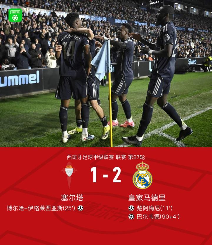 多少?皇马vs塞尔塔导播在记分牌上给了50分钟伤停补时