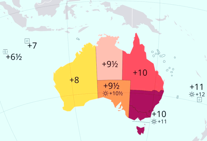 澳大利亚的国土横跨多个时区。