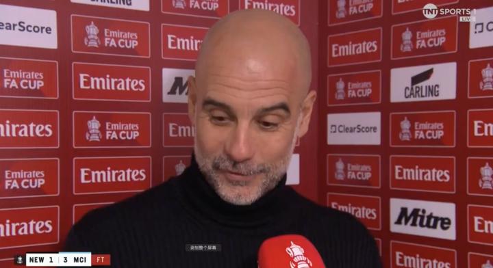足总杯1/8决赛,曼城客场3-1击败纽卡,赛后,曼城主帅瓜迪奥拉接受了TNT体育的采访。