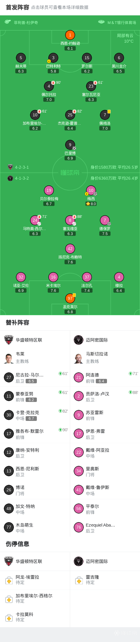 华盛顿特区联vs迈阿密国际:梅西、德保罗首发,苏亚雷斯替补