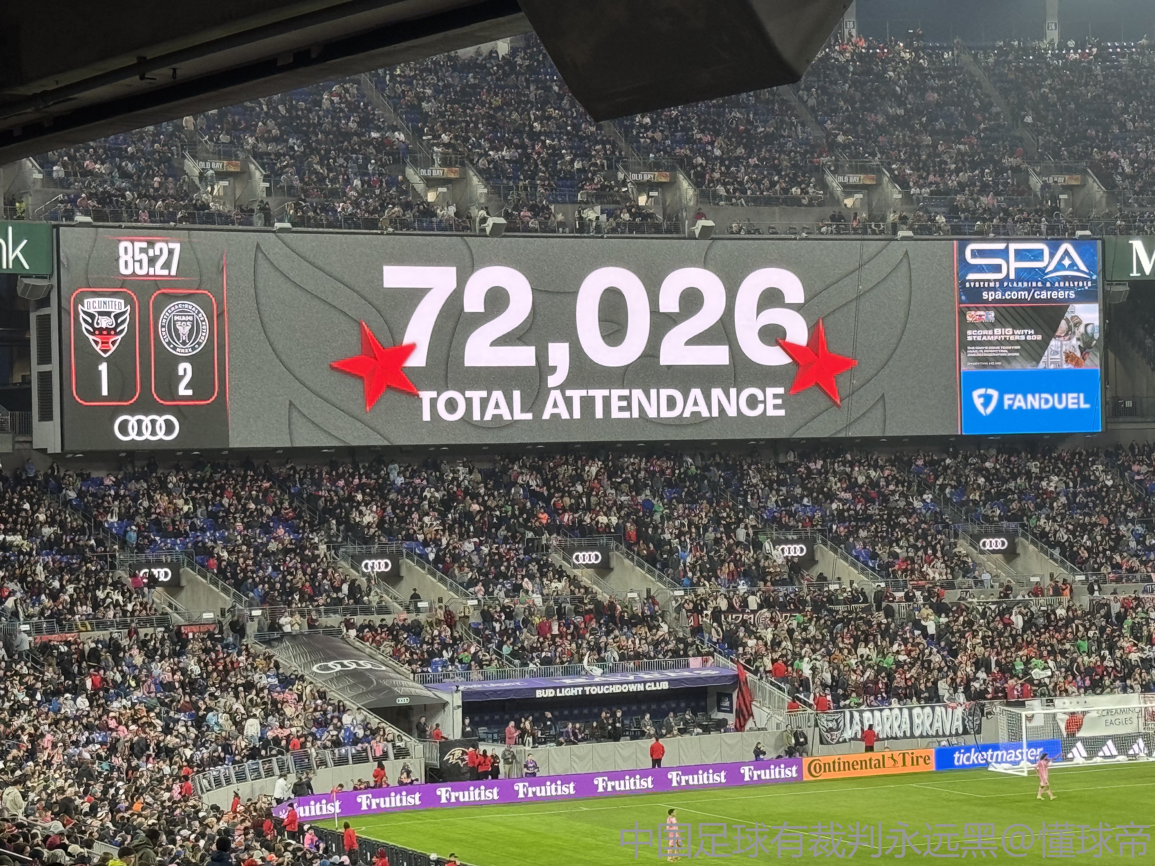 联盟真是给足了梅西和迈阿密面子了 直接跨城安排大型体育场 顺手就把DC United的观赛人数纪录给破了 整个客场一起喊梅西的体验也是挺牛逼的