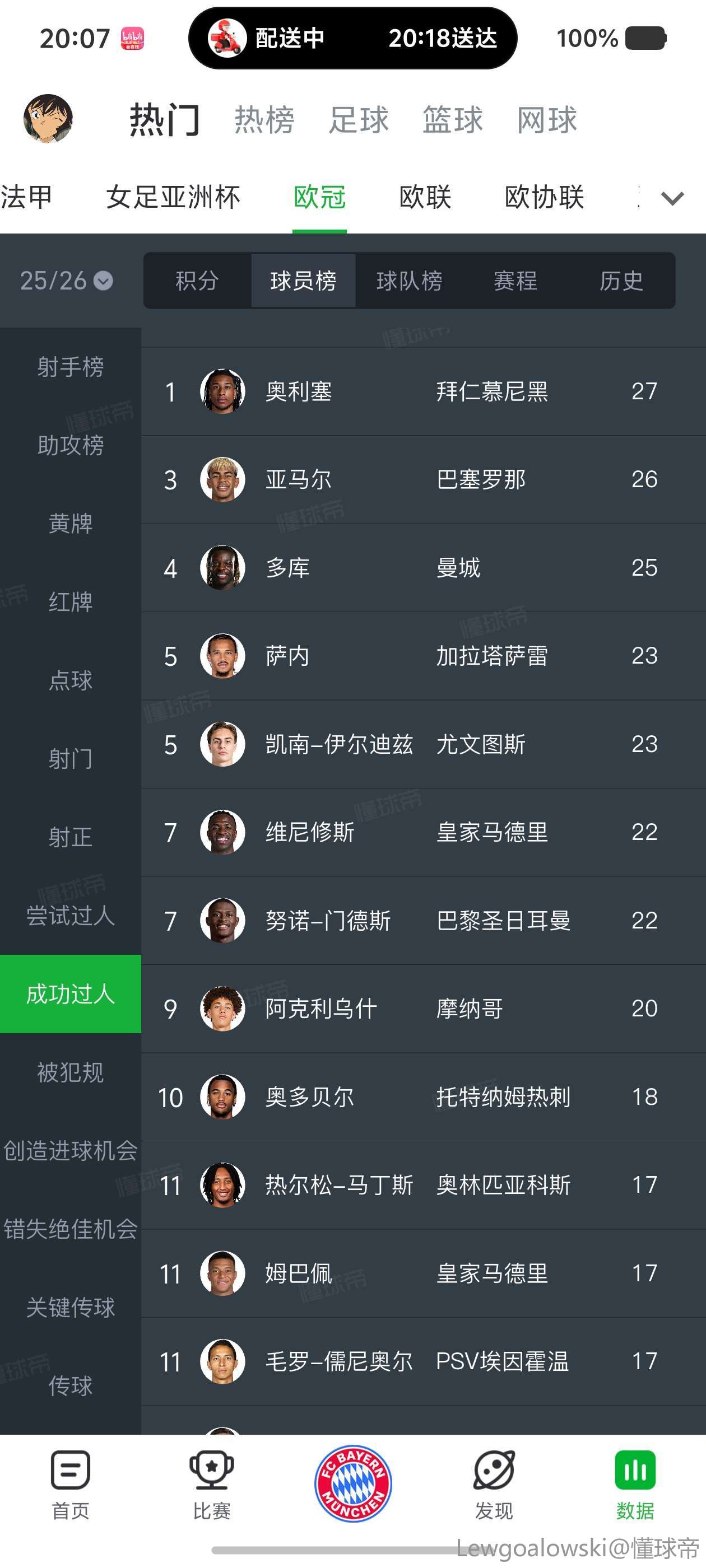 纯野榜,就亚马尔用成功过人,剩下都用尝试过人是啥意思,再一个评论可别说其他的比赛,这只是统计五大联赛的,不过也是野榜,ex