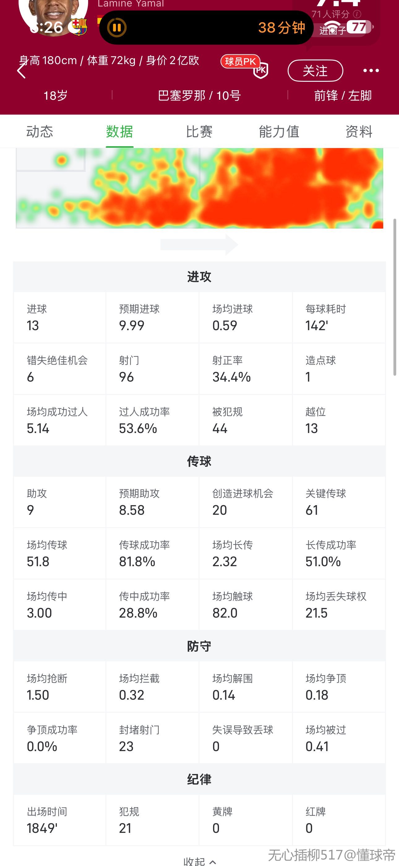 这数据是错的,亚马尔本赛季全赛事加一块至少180+了