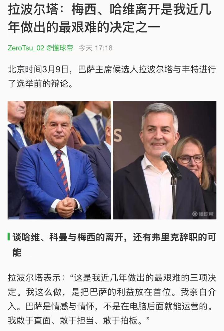 扫描下载懂球帝首页>动态> 懂球号> 作为18年美菱格脱粉转0.1年的巴萨球迷,拉波尔塔的行为...
