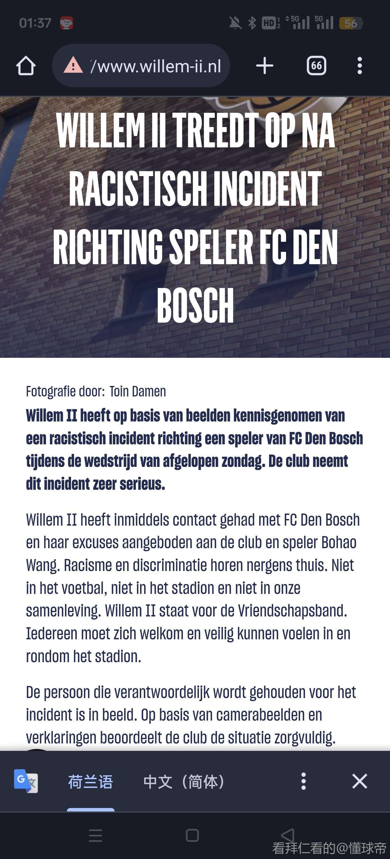 扫描下载懂球帝首页>动态> 王博豪在荷乙遭遇种族歧视,威廉二世官方公开致歉
