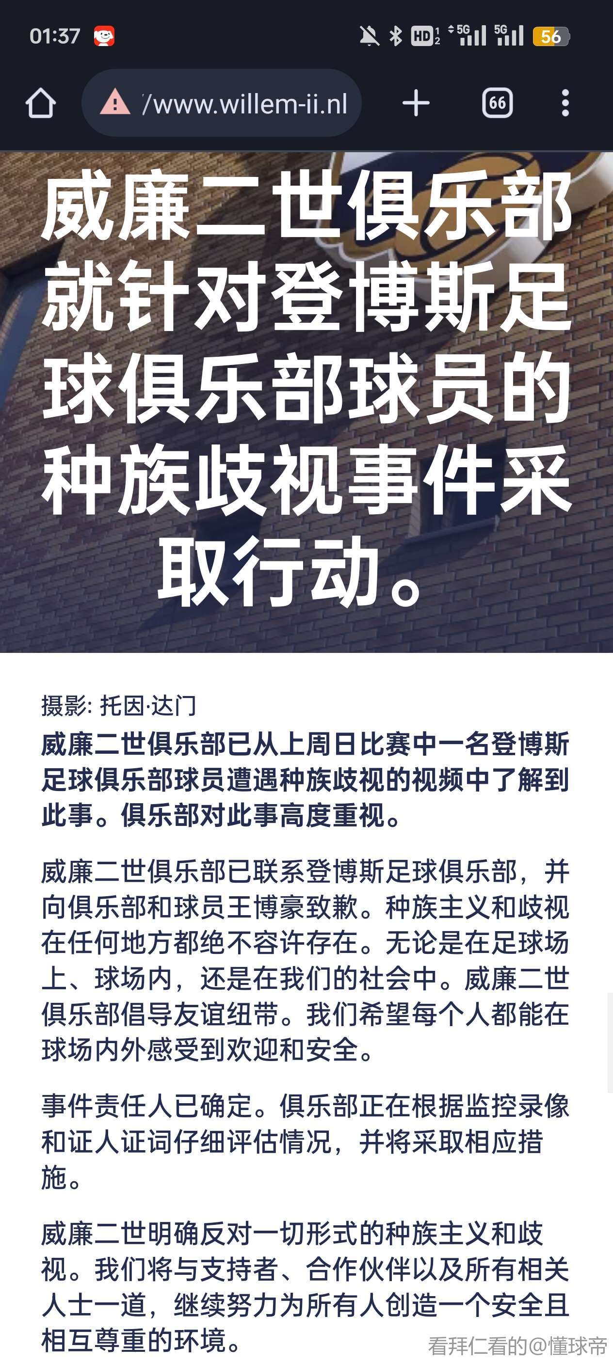 03-10 07:00威廉二世俱乐部官方发文称,歧视中国球员王博豪的球...