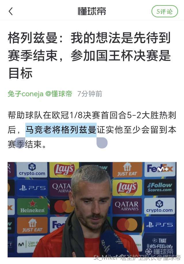 03-11 06:535-2大胜热刺,马竞队史首次欧冠淘汰赛单场进球5+