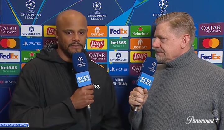 欧冠1/8决赛首回合,拜仁客场6-1战胜亚特兰大,拜仁主帅孔帕尼赛后接受了CBS体育的采访。