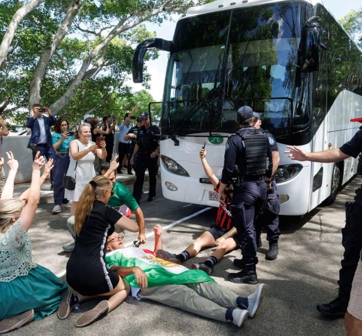 早些时候,在球员们从黄金海岸的酒店飞往悉尼之前,抗议者曾试图阻止他们大巴的离开。