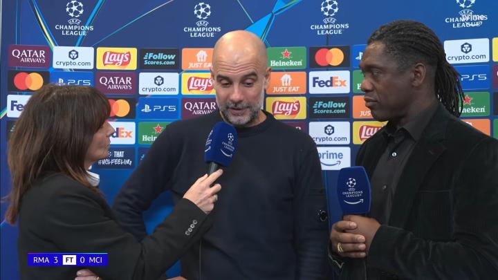率队在欧冠1/8决赛首回合客场0-3惨败给皇家马德里之后,曼城主教练瓜迪奥拉接受了来自意大利亚马逊Prime Video的采访。