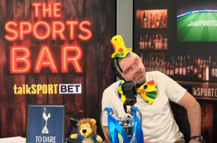 戴着波斯特科格鲁面具、穿着小丑服装的坎迪在talkSPORT演播室贡献了奥斯卡级别的表演,两次激怒奥哈拉直接走出直播间。