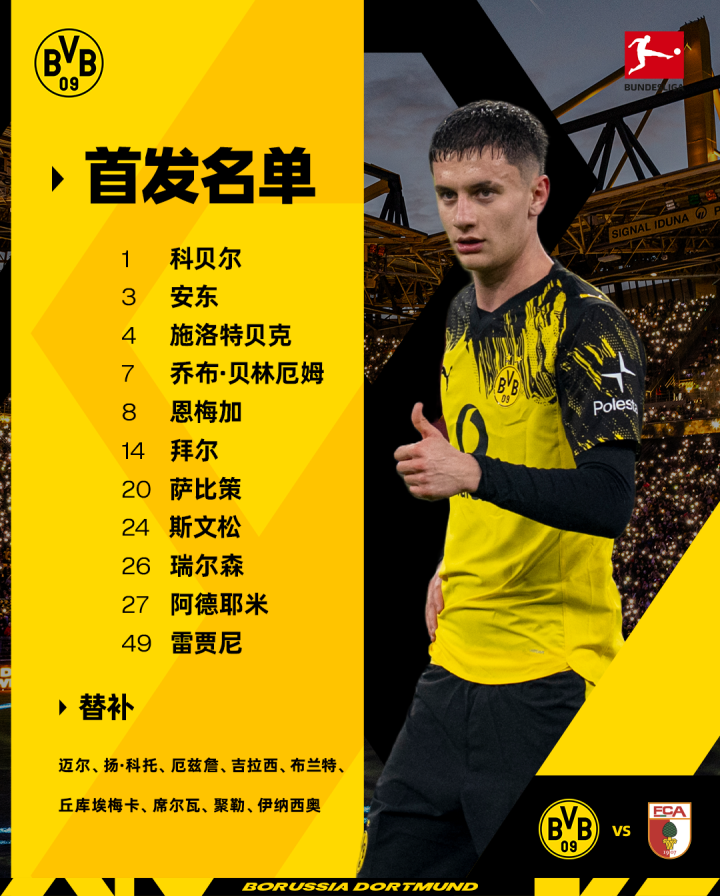 03-14 23:16多特vs奥格斯堡:小贝林厄姆首发,阿德耶米、拜尔出战