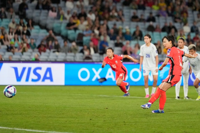 胜负已无悬念,申教练在比赛末段展现从容,用三门禹瑞彬换下门将柳知秀,给了她上演A级比赛首秀的机会,至此韩国女足本次参加亚洲杯的26人全部在赛事中登场,也是亚洲唯一一支达到全员登场的球队。随后的比赛,韩国女足又连续打入两球,但都因为犯规在先进球无效。第85分钟,02年出生的小将李恩影在接到队友的单刀后,冷静将皮球送入空门,5-0!这也是她本届杯赛的首球。伤停补时阶段,乌兹别克斯坦后卫禁区内犯规,老将张瑟琪将点球送入球门右下角,最终将比分锁定为6-0!一场大胜,韩国女足成功拿到了四强的资格,并且成功获得了巴西世界杯的入场券,连续四次杀入世界杯的正赛。