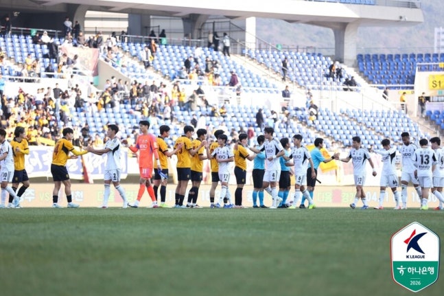 另外一场比赛中,金泉尚武客场挑战大田韩亚市民,他们虽然率先进球,但又一次被对手扳平。终场结束前,黄善洪的球队本来由徐进水完成绝杀,但最终被VAR裁判组“扼杀”!1-1的结果,让“冠军热门”大田开局三连平,而金泉尚武则是三次领先被扳平,对于朱承进教练来说,需要解决的东西还有很多。