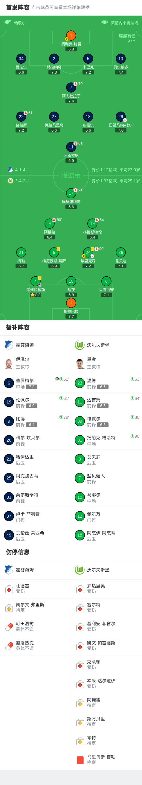 半场战报:霍芬海姆0-0沃尔夫斯堡