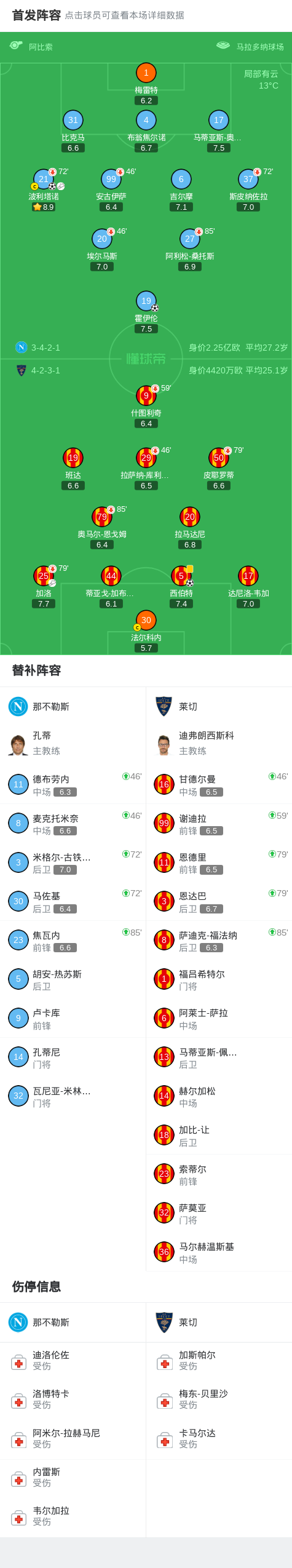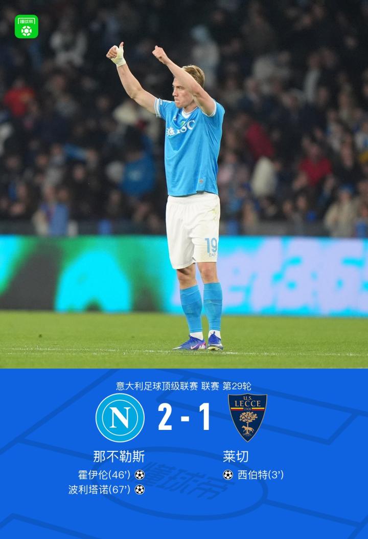 扫描下载懂球帝首页>动态> 那不勒斯2-1逆转莱切,波利塔诺传射建功,霍伊伦破门