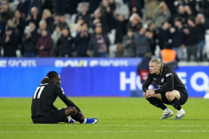 终场哨响,曼城球员像被抽干了力气,瘫倒、蜷缩在草皮上,满脸绝望。