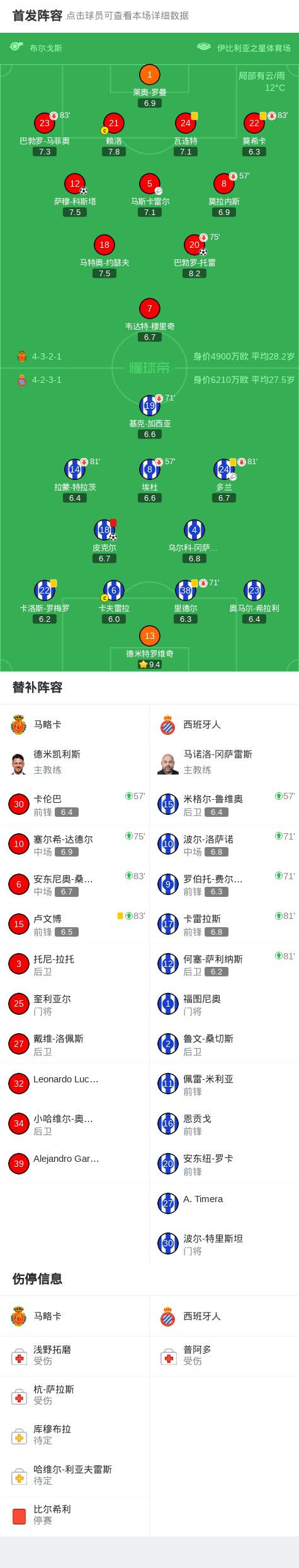 马略卡vs西班牙人:巴勃罗-托雷、韦达特-穆里奇首发,基克-加西亚、卡夫雷拉出战