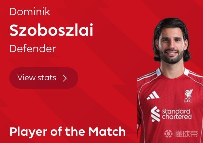 懂球帝首页>动态> 任意球破门,索博斯洛伊当选利物浦vs热刺全场最佳球员