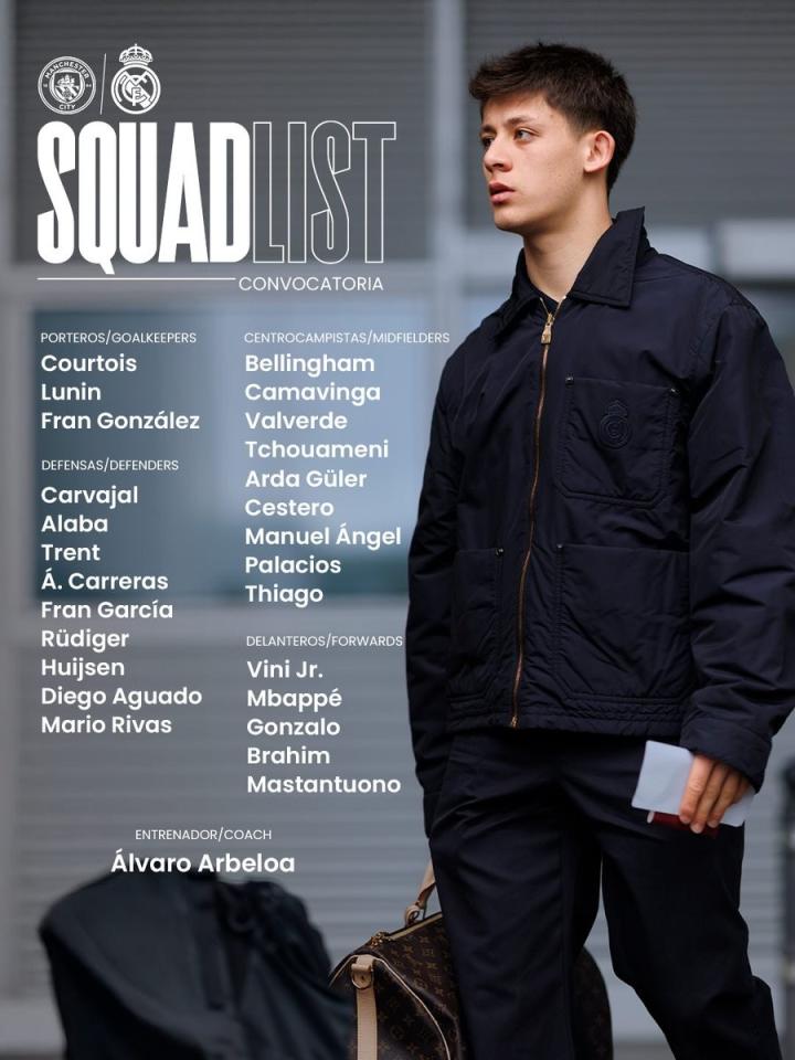皇马战埃尔切大名单:姆巴佩、劳尔-阿森西奥等人缺阵