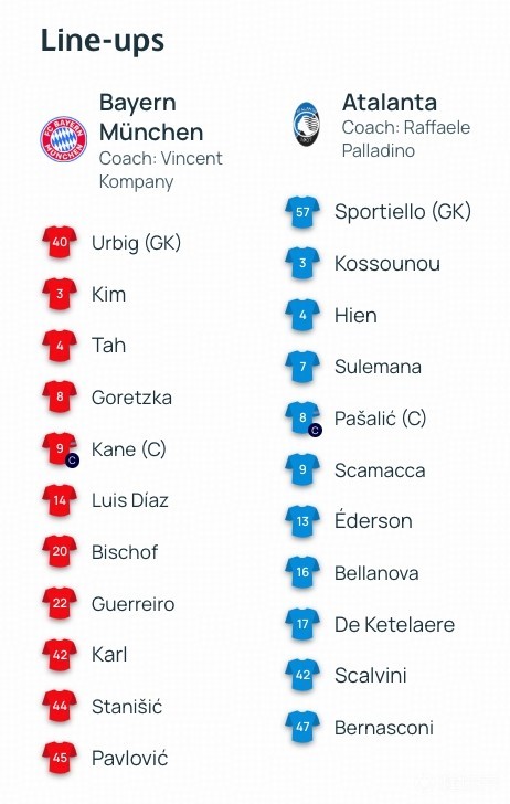 扫描下载懂球帝首页>动态> 拜仁vs亚特兰大:凯恩搭档迪亚斯,乌尔比希、卡尔出战