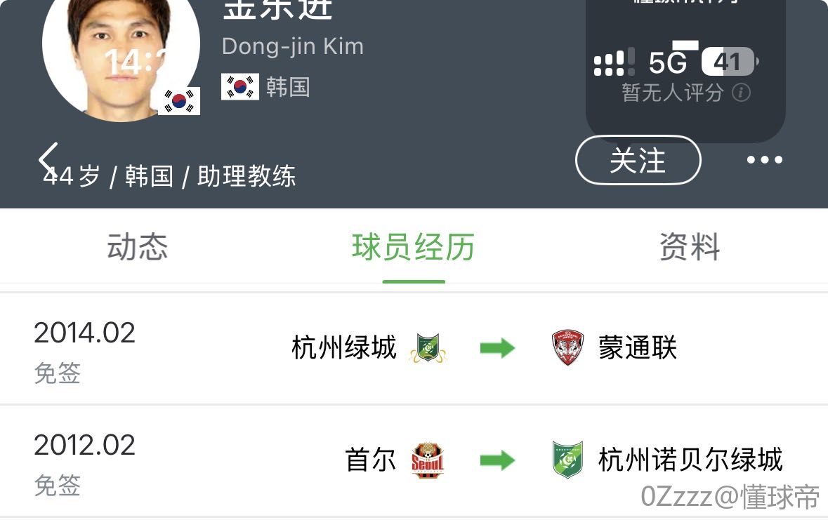 冷知识:韩国队主教练以前执教过绿城,助理教练金东进效力过绿城