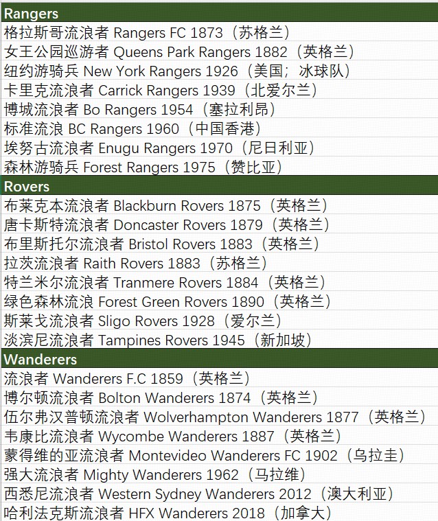 要我说,Rangers翻译成游骑兵,Rovers翻译成漫游者,Wanderers翻译成漫步者,不是两难自解了吗