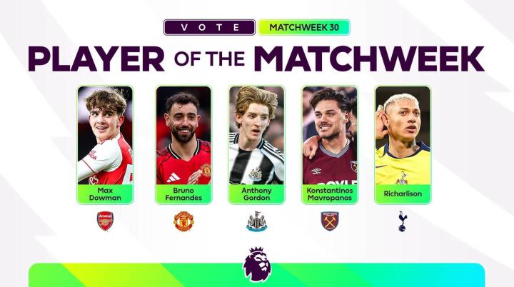 扫描下载懂球帝首页>动态> 英超第30轮最佳球员候选:道曼、B费、里沙利松等人在列