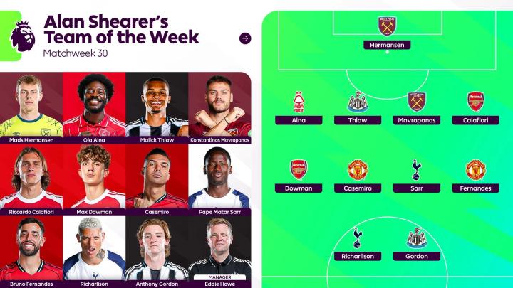 扫描下载懂球帝首页>动态> 希勒评英超本轮最佳阵容:B费、道曼、里沙利松等人在列