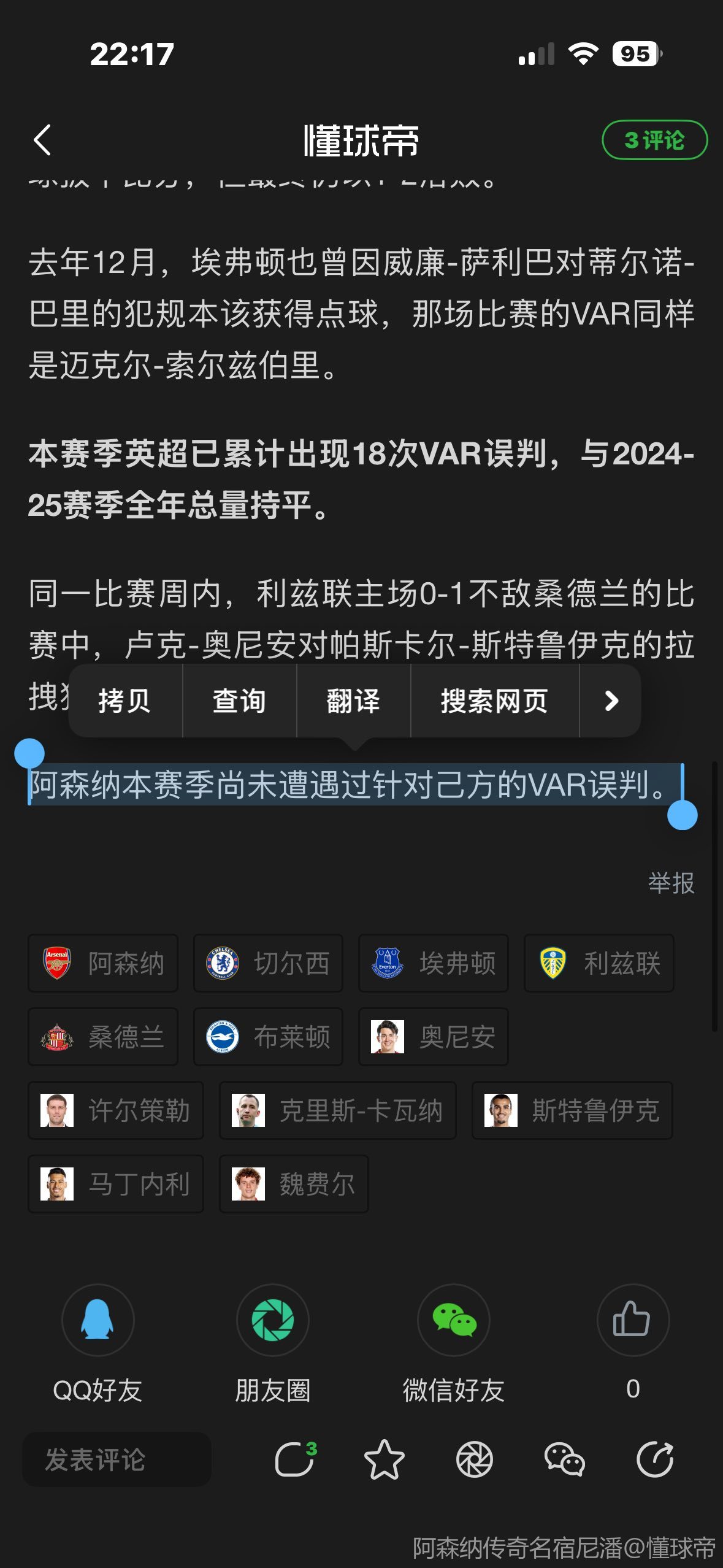 上场哈弗茨禁区被踩倒不算误判?哲凯赖什禁区被波普绊倒不是误判?四比一维拉最后维拉球员禁区内盖帽不是误判?还是故意选择性眼瞎?“阿森纳还尚未遭遇己方var误判”