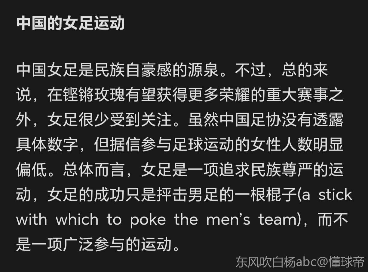 当大家都开始重视女足后,世界大部分国家的女足排名会逐渐跟男足持平,传统足球强队男足的经验可以直接照搬到女足,但是我们并没有找到(或者暂时还没有)符合中国的男足发展道路