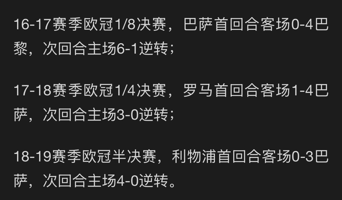 只要是逆转,大概率就有我们巴萨,无论是喜是悲,不过前几年悲的多。