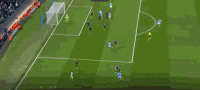 第39分钟,居莱尔主罚任意球直接打门,皮球击中人墙飞出底线